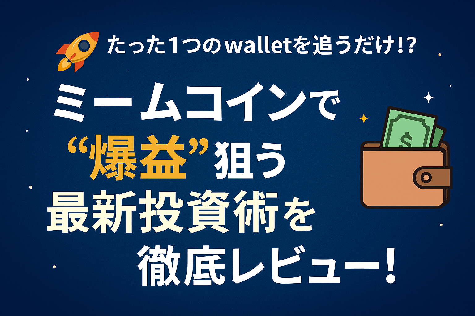 「仮想通貨は難しい」「投資は勉強しないと勝てない」 そんな固定観念をぶち壊す、全く新しい“情報型”投資メソッドが登場。 今回は、少額から始められて、データを元に勝てる銘柄だけを見極める 投資の世界において「少額から始めて、短期間で爆発的な利益を上げる」という言葉は、これまで何度も囁かれてきました。特に仮想通貨の分野では、それが現実となるケースも多く、「次に来る銘柄」をいかに早く掴めるかが勝負の鍵を握ります。 そんななか、WEB3.0時代の資産運用として注目されているのが「ミームコイン投資」。今回レビューする『ミームコイン投資実践講座』は、単なる投資ノウハウではなく、“ゲーム感覚で資産を増やす”という新しいスタイルを提案する教材です。 本講座の最大の特徴は、「勝っているwalletをストーカーして便乗する」という非常に斬新かつ合理的な手法にあります。 これはブロックチェーン上で公開されている取引履歴を解析し、利益を上げているアドレスの行動パターンを真似するというもの。つまり、インサイダーでも裏情報でもなく、すべてが“オープンソース”の世界で完結します。 PDF教材(全20ページ)は、初心者でも迷わず実践できるように「6つのステップ」で構成されています。 特に後半の「リサーチ方法」は他に類を見ないほど実践的で、以下のようなプロセスが紹介されています: 教材には「スリッページ(手数料)の高さ」や「売却タイミングの難しさ」についても正直に言及されています。 過度に煽ることなく、リスクを冷静に捉えた説明がある点も高評価。短期的な爆益だけに目を奪われず、“勝率を安定させるための分析力”を養う教材だと感じました。 教材購入者限定で、Zoomでの個別戦略会議に参加できる制度があり、これが非常に実用的です。初心者がつまづきやすい「買い時・売り時」などの判断をプロから直接アドバイスしてもらえる機会は貴重です。 さらに、講師がリサーチした「常勝walletアドレス10選」が特典としてもらえるのは破格。時間と労力を短縮し、即戦力となるデータとして活用できるでしょう。 この講座は、以下のような方に特におすすめです。 『ミームコイン投資実践講座』は、旧来の投資手法とは一線を画す「情報戦」のための教材です。 “誰がどのタイミングで買ったか”を追跡し、その動きを再現する。まさに「戦略型WEB3副業」とも言えるスタイルで、投資の敷居を下げつつ、収益の可能性を最大限に広げています。 今後、仮想通貨やWEB3の世界で戦っていきたいと考える方には、確かな道標となるはずです。 『ミームコイン投資実践講座』は、以下のリンクよりご登録可能です。